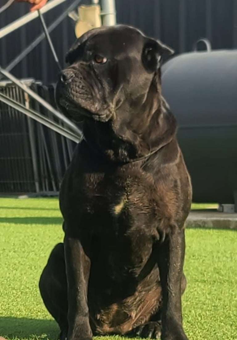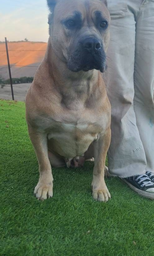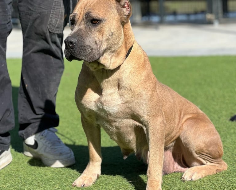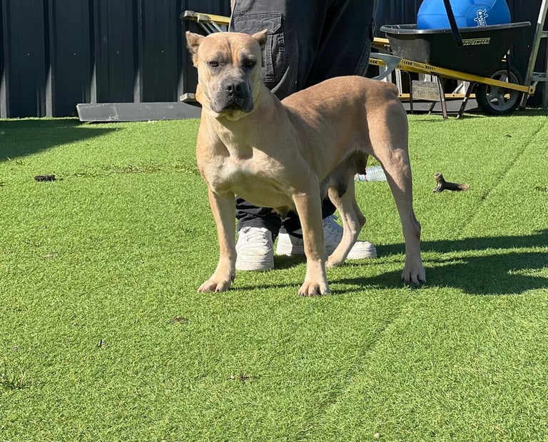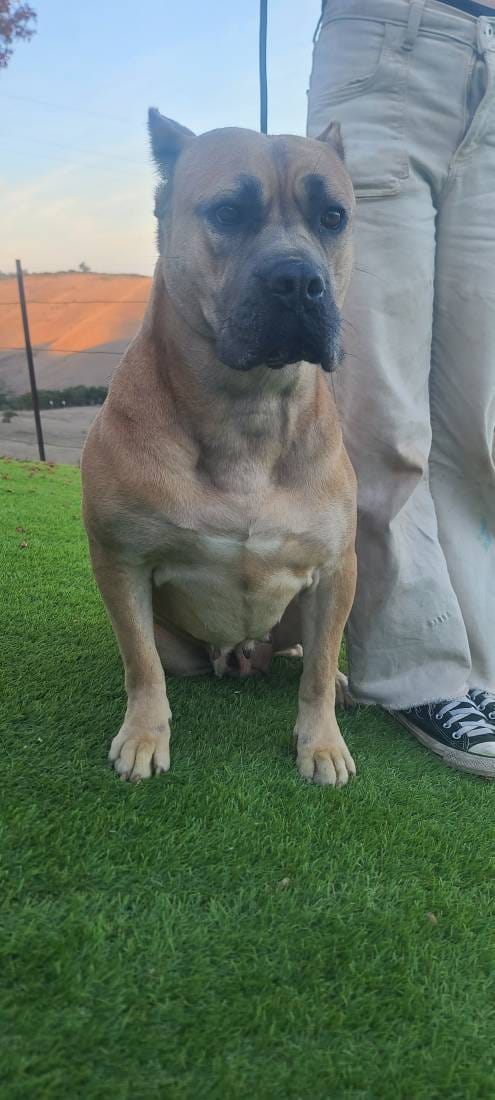 Chiquita is a stunning 3-year-old light fawn Cane Corso who’s lived the hard life—and come out shining. Found as a junkyard dog, she gave birth in the freezing cold last December and raised a beautiful litter with grit and grace. Now, it’s her turn to be spoiled.
