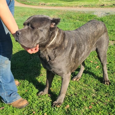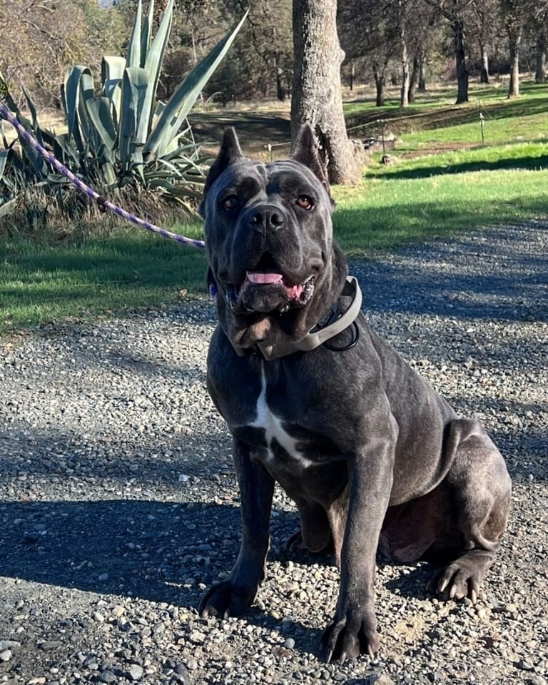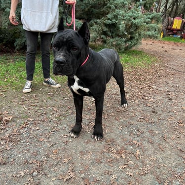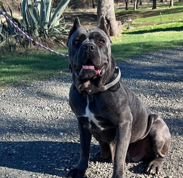 Chiquita is a stunning 3-year-old light fawn Cane Corso who’s lived the hard life—and come out shining. Found as a junkyard dog, she gave birth in the freezing cold last December and raised a beautiful litter with grit and grace. Now, it’s her turn to be spoiled.