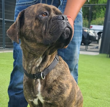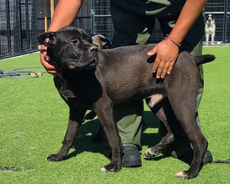 But Lennox is a fighter. Since coming into rescue, he’s undergone a complete transformation — a true testament to his spirit. With patience, kindness, and consistency, Lennox has blossomed into a joyful, affectionate young pup who lives for connection. He craves gentle touch, thrives on praise, and lights up when he’s told he’s a good boy.