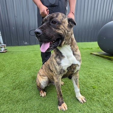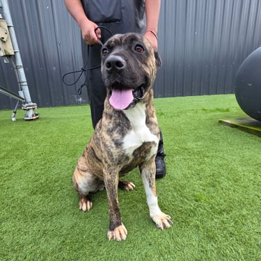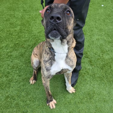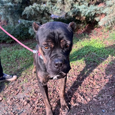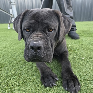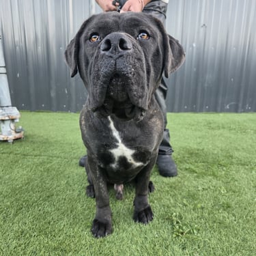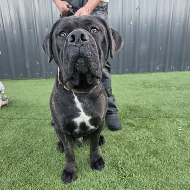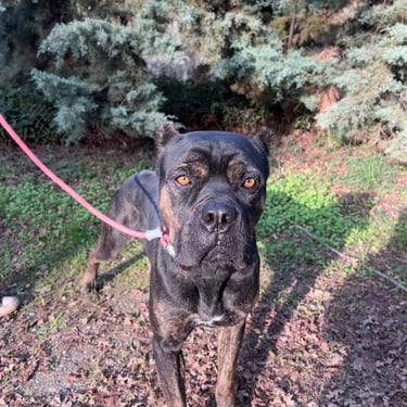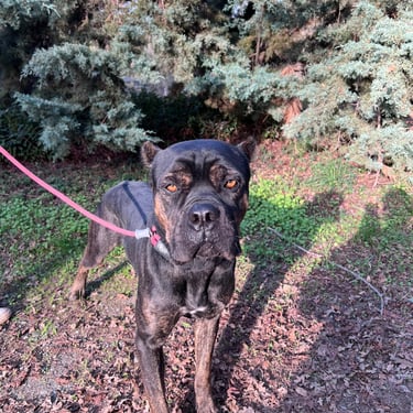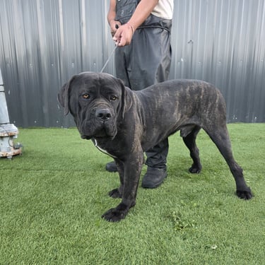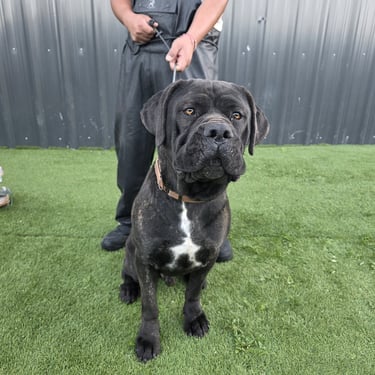 Zion is a 1-year-old male Cane Corso who came to us after being taken from a homeless man who was abusing him. He is safe now, and his whole world has opened up. He is happy, energetic, and full of spirit. He bonds fast, wants to be with his person, and is learning structure and routine. He is ready to keep moving forward with someone who will guide him and give him consistency.